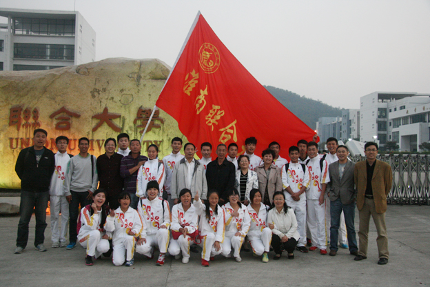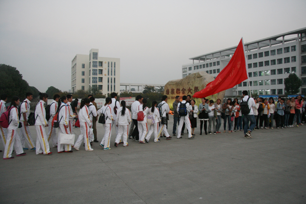 下午6点基础部和运动员所在系部的负责人、教师和学生来到学校大门口迎接载誉归来的运动员和教练员,当运动员和教练员拖着疲惫的身躯走下车时学校大门口响起了热烈的掌声,鞭炮齐鸣,系部领导迎上前去表示祝贺,整个场面充满了激动、关爱、和谐的气氛!