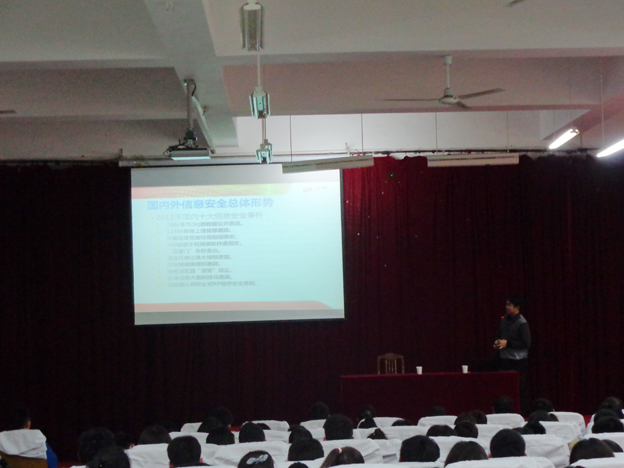 12月4日下午,beat365特邀请网神信息(北京)股份有限公司网络安全工程师李宁先生在西教学楼报告厅为beat365师生举办“网络安全精彩一课”网络安全讲座。