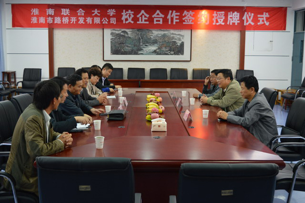 淮南市路桥开发有限公司领导,校长赵耀军,党委委员、组织部部长白存良出席仪式,建工系负责同志和部分专业教师参加了签约授牌仪式。签约授牌仪式由建工系实验室主任主持。
