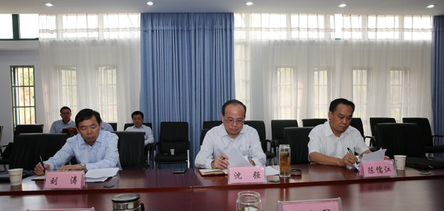 10月9日下午,淮南市委书记沈强在市委常委、市委宣传部部长陈儒江,市委常委、市委秘书长刘涛等陪同下,来beat365调研指导工作。调研座谈会在实训楼会议室召开。校党委书记万继军,校长赵耀军,副书记朱亚非,副校长尚文,纪委书记白玫,党委委员、组织人事部部长白存良及相关职能部门负责同志参加会议。