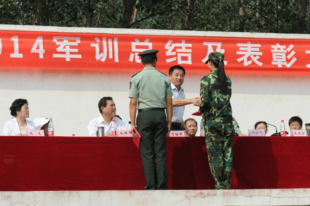 副校长尚文宣读了2014年军训表彰决定。党委书记万继军分别向获得“优秀教官”和“优秀学员”代表颁发荣誉证书。