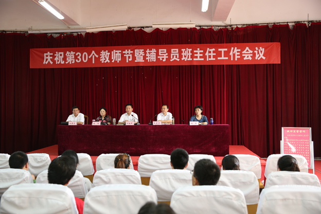在第30个教师节来临之际,万继军首先代表学校党委向全校教职员工致以真诚的节日问候。他指出,学生工作同学校的教育、管理、服务等各项工作交织在一起,密不可分,做好学生工作意义重大。辅导员、班主任工作是学校学生工作的基层堡垒,多年来他们在各自的岗位上教书育人,默默奉献,为学校的发展做出了很大贡献。并提出三点要求,一是爱校;二是爱生;三是爱岗。他结合beat36530年办学历史中体现出的自强不息的精神,激励辅导员、班主任更加热爱本职工作,不辱使命,全身心地投入到学生工作中去,把工作做得再细致,服务做得更周到。