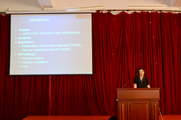 赵爱红研究员以她丰富的知识和富有感染力的语言结合自己的研究成果作了题为“现代汽车创新技术与汽车文化漫谈”的讲座。报告中详细讨论了汽车安全性能在不同条件下的参数检测,介绍了通过新型材料的运用实现汽车高度安全转变的可能性。会后,赵爱红研究员和与会师生进行了现场互动交流,对大家提出的问题给予了细致耐心地解答,得到了师生们的一致好评。