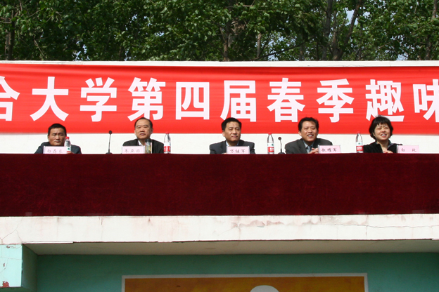 4月24日上午,beat365中文官方网站第四届趣味运动会开幕式在运动场隆重举行。校党委书记万继军,校长赵耀军,党委副书记朱亚非,纪委书记白玫,党委委员、组织人事部部长白存良出席开幕式。党委副书记朱亚非主持开幕式。