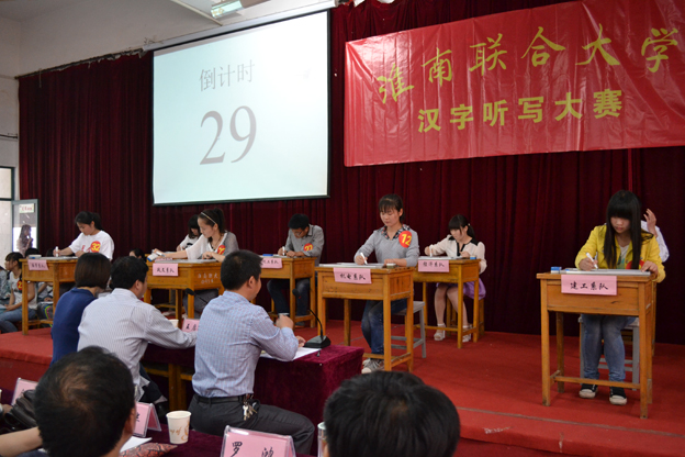大赛采取现场听写的方式,每系派出5名队员参赛,每轮听写5个词语,书写正确者进入下一轮听写,书写错误者淘汰出局。比赛现场竞争激烈,高潮迭起,选手们时而眉头紧锁、冷静思考;时而胸有成竹、奋笔疾书!经过10轮角逐,建工系、外语系凭借自身实力及出色表现分别获得冠亚军,医学系、经济系获得季军,政文系、机电系、化工系、计算机系获优胜奖。