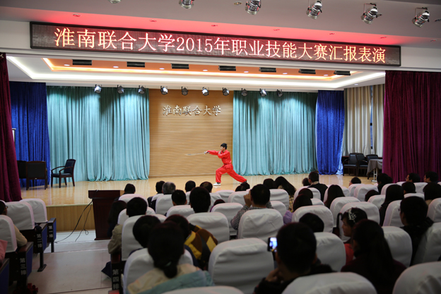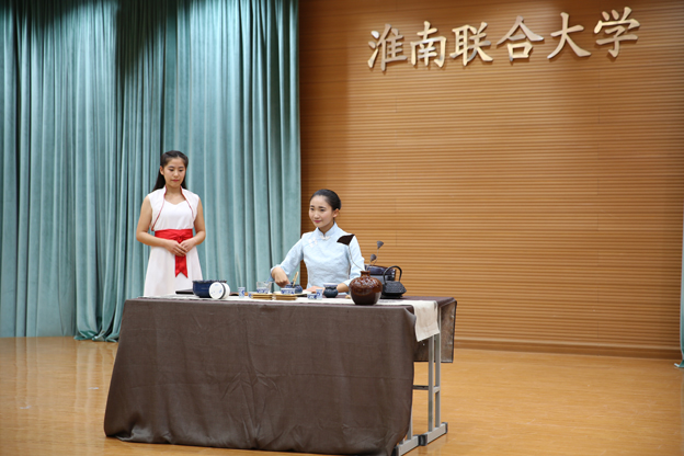 整场演出,精彩纷呈,高潮不断,台下掌声阵阵,热闹非凡。政文系带来的茶艺表演《荷韵观音》拉开整场演出的帷幕,表演者通过各种茶叶冲泡技艺的形象演示,科学地、艺术地展示整个泡饮过程,伴着袅袅的古筝音乐,全场观众得到美的享受和情操的熏陶。经济系的同学们通过珠算、点钞表演让大家感受到千年珠算文化的传承,一个个熟练的点钞动作,见证了同学们技艺的精湛。基础部的刀术表演、外语的英语导游现场解说以及计算机系图文并茂的设计作品展示都让同学们耳目一新。最后是医学系带来的化妆造型模特秀,医学系医学美容专业的造型师们给模特进行了现场彩妆和发型的造型展示,在短短几分钟内,分别向大家展示了职业妆、学生妆、淑女妆、晚宴妆,娴熟的手法,让在场观众赞叹不已。