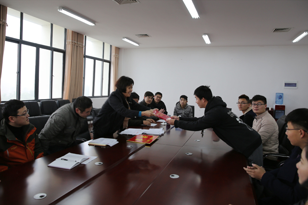 会议宣读了关于授予经济系安奇同学“平安校园”先进个人荣誉称号的决定(淮联学〔2015〕16号),校领导给安奇同学颁发了荣誉证书和奖金。