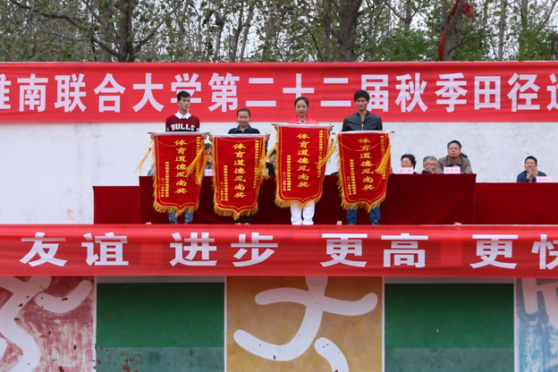 闭幕式上,卞霞宣读《关于表彰2014-2015学年度学生晨跑活动先进集体、先进个人的通报》,校运动会总裁判长宣布了团体总分前三名、体育道德风尚奖以及开幕式最佳方阵的系部。校领导为获奖集体和个人进行了颁奖。