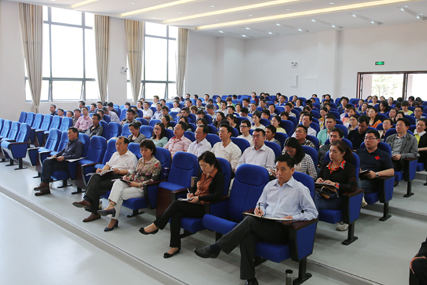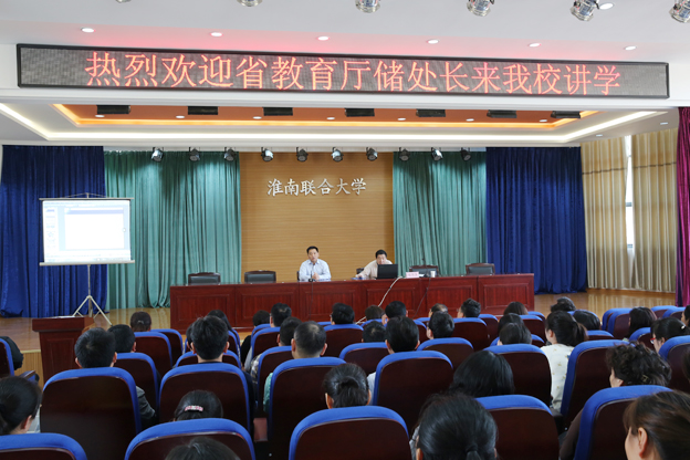 4月29日上午,省教育厅高教处处长储常连,应邀来校作题为“克服‘两化 ’落实‘两本’全面推进综合改革——努力创建地方技能型高水平大学”的专题报告。校党委书记万继军,党委副书记朱亚非,副校长尚文,纪委书记白玫,党委委员、组织人事部部长白存良,各部门负责同志、教师共一百八十余人聆听了报告。