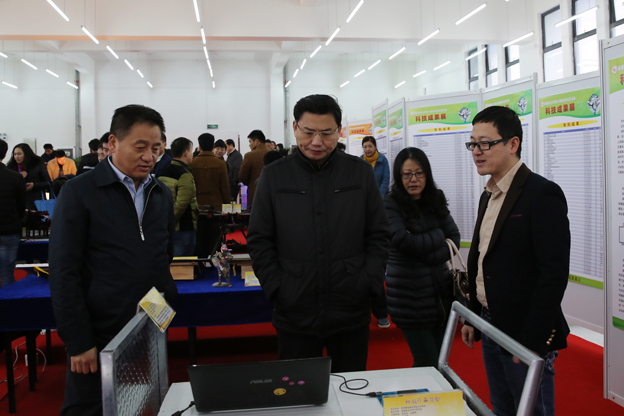 仪式前,省科技厅副厅长刘明平一行在校领导的陪同下参观了beat365创业孵化基地和第十届科技文化艺术周科技成果展。