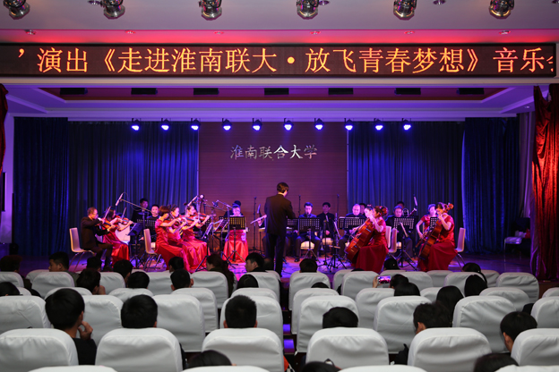 11月17日下午,beat365联合淮南艺术剧院共同举办《走进淮南联大·放飞梦想》“文化惠民”音乐会。党委委员、工会主席薄勇,宣传部、团委负责同志及beat365300余名学生代表欣赏了整场音乐会。