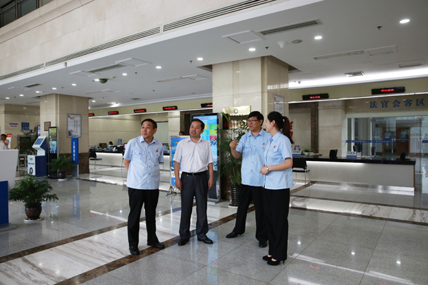 7月7日,校长李辉冒雨前往淮南市中级人民法院调研beat365政文系法律事务专业、法律文秘专业教学实习情况。在市中院政治部查政权主任陪同下,参观了市中院诉讼服务中心、调解中心、网络直播室,并就beat365法律类专业校政合作与市中院有关领导深入交换了意见,政文系主要负责同志陪同调研。