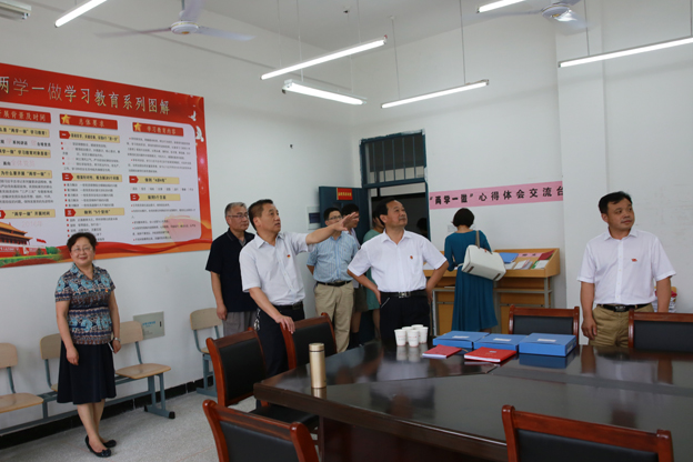 在听取专题汇报以及查看台账资料后,督导组在校领导的陪同下前往医学系和建工系实地察看,就宣传氛围营造、学习资料收集、学习教育记录等内容进行了督查指导。
