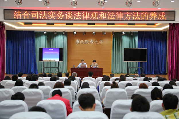 讲座邀请了淮南市中级人民法院宣判质量管理办公室刘凤玉法官主讲,他条分缕析,旁征博引,结合司法实务谈了法律观和法律方法的养成,给beat365教职工和学生带来了一场通俗易懂又不失法理的讲座。