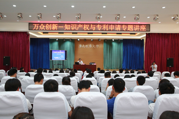 报告会邀请到淮南市科技局知识产权处处长陈慕主讲,他从知识产权的内涵、淮南市专利资助政策、发明创造的方法、专利基础知识、专利申报流程等几个方面做了深入讲解。报告内容丰富,讲述深入浅出,有法律条文、有数据支撑,有理论讲解,有实例展示,处处向学生传达“发明创造即在身边”的理念。报告会后,同学们踊跃提问,会场气氛热烈,陈处长就学生提出的问题,一一进行了解答。