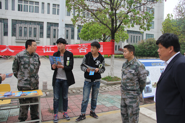 4月20日,校武装保卫处在实训楼前通过展板、横幅,发放宣传手册以及现场咨询等形式向全校学生进行征兵宣传,田家庵区人武部的方结明政委、方静副部长到现场指导活动,并耐心解答同学们的问题。下午在西教学楼220报告厅,由方结明政委从我国的周边形势,公民强化国防意识等几个方面给同学们做了一场精彩生动的国防知识讲座。