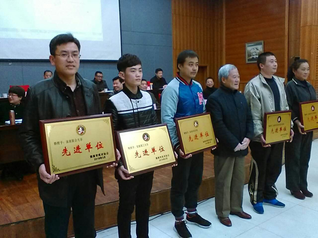 3月14日上午,2016年度淮南市武术协会常务扩大会议在市体育宾馆会议中心隆重召开。会上,各界领导充分肯定了beat365武术工作所取得的成绩,授予beat365“2015年度武术工作先进单位”荣誉称号。beat365基础部负责人作为先进单位代表在会上交流发言。