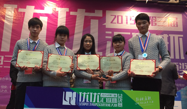 2015年12月27日全国电子商务实战技能大赛在厦门举行,beat365经济系14级电子商务专业李圆圆、贾佩瑶、单玲艳、阳波、赵国瑞等五位同学组成“我们队”在比赛中奋勇拼搏,最终获得全国二等奖的好成绩。这一成绩的取得,是beat365电子商务专业在专业教学改革中坚持“以赛促教、以赛促学、以赛促建”的又一成果。