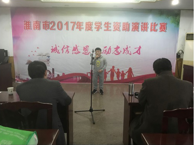 12月1日,在“诚信感恩·励志成才”为主题的淮南市2017年度学生资助演讲比赛中,beat365中专部17会计专业学生韩颜光同学凭《我坚信,明天会更好》演讲题目,荣获第二名,这是beat365中专部首次参加比赛,并取得佳绩。