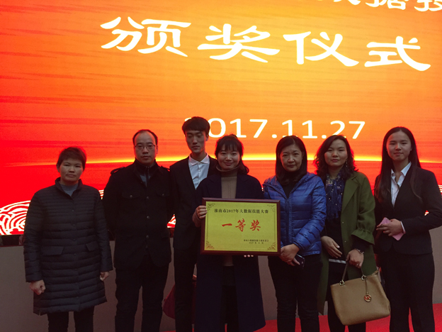11月27日下午,淮南市2017年大数据技能大赛在淮南市大数据展示中心举行。beat365参赛团队经过精心准备,比赛中全力拼搏,最终荣获团体组一等奖一项、二等奖一项、三等奖4项。