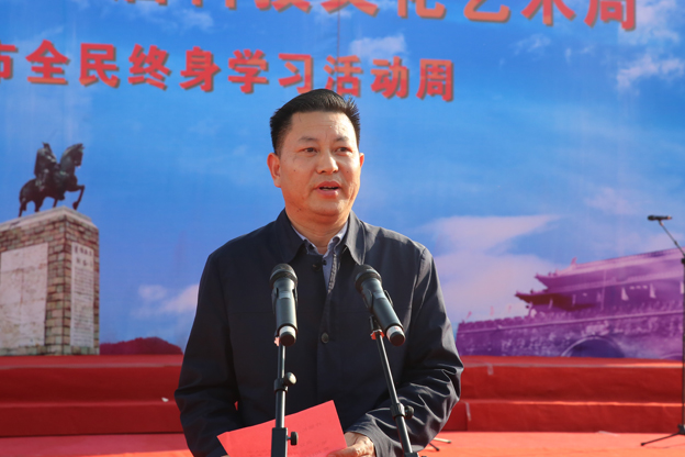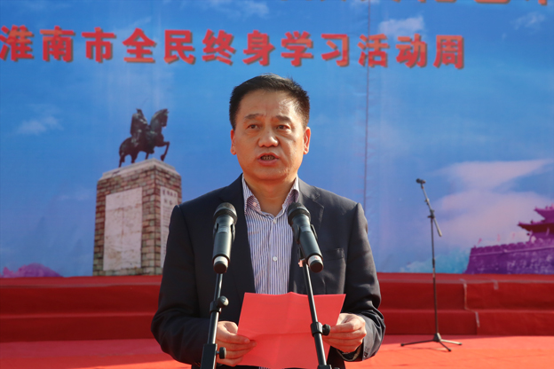 市教育局局长李蔚然在致辞中要求,要全面贯彻党的十九大精神,办好继续教育,加快建设有质量的职业教育。要发展全民教育、终身教育,建设学习型社会,努力让每个孩子享有受教育的机会,努力让13亿人民享有更好更公平的教育,获得自身发展、奉献社会、造福人民的能力。要积极探索党委领导、政府、社会支持、全民参与的建设模式。她号召每个人、每个家庭、每个单位要把学习作为工作的重点、作为人生的支撑,在学习中增长见识,为全民事业贡献力量。