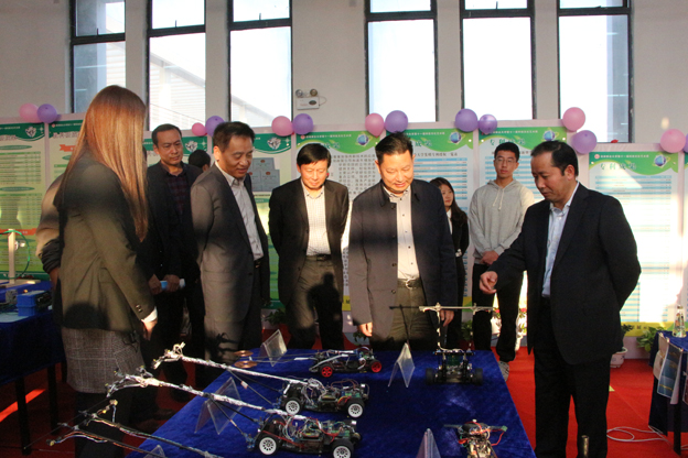 开幕式结束后,市领导、县、区及市直机关、职教集团理事会成员单位领导、校企合作单位来宾在校领导陪同下前往beat365南区3号报告厅参观了科技创新作品成果展。