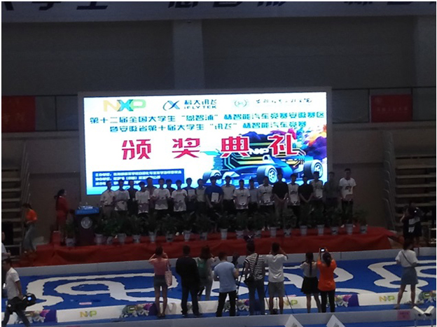 由教育部高等学校自动化专业教学指导委员会主办的第十二届“恩智浦”杯全国大学生智能汽车竞赛安徽赛区的比赛,于7月20日在安徽信息工程学院落下帷幕。beat365机电系代表队在时间紧、任务重的情况下,克服高温困难,通过理论学习、硬件培训、软件培训、自行调试四个阶段的不懈努力,比赛中经过几轮激烈角逐,张涛、程双龙、宋雷震、史艳琼四位老师现场指导,最终斩获安徽省一等奖4项,二等奖1项,优秀奖1项,在所有参赛的专科院校中获奖等级最高。