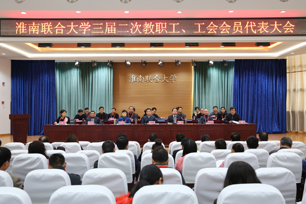 李辉向大会作了题为“凝心聚力 稳中求进 全力创建地方技能型高水平大学”的行政工作报告。报告从完善管理机制,规范办学治校;招生稳步增长,就业再创佳绩;教学改革持续推进,教研科研成果丰硕;积极争取政府投入,加快学校基本建设步伐;推进学生工作创新,创建平安校园和省级文明校园;关心关注教职工利益,关爱关照贫困学生,圆满完成市扶贫工作任务;加强工会建设,不断提高工作水平七个方面回顾了2016年的主要工作。对2017年党政工作的总体要求和思路做出安排,重点做好十个方面的工作:继续加大招生宣传工作力度,保证各类在校生规模的稳定;优化结构,提升内涵,提高质量;实施校级教学改革项目,提升教科研水平;紧抓“双创”战略,做好学生创业就业工作;加快实验室、图书馆建设,建设智慧校园;加强组织领导,依法民主治校;积极为教职工谋福利,关爱贫困学生成长;强化管理,扎实做好学生工作;做大做强职教集团,服务地方经济社会发展;创建平安、文明校园。