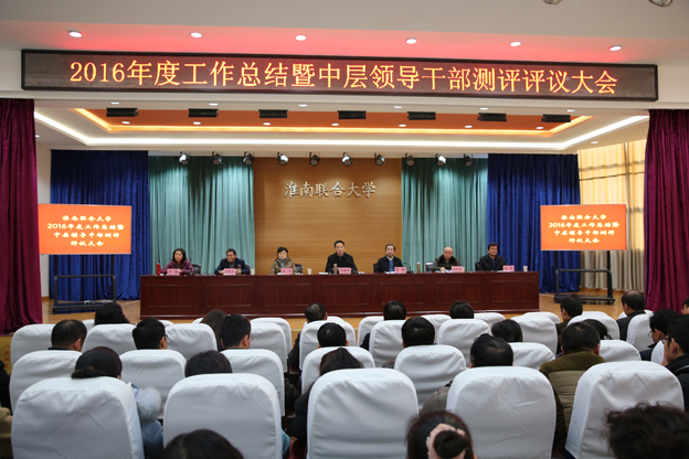 1月13日下午,beat365中文官方网站2016年度工作总结暨中层领导干部测评评议大会在1号报告厅召开。校领导班子全体成员出席会议,副高以上职称教师、副科级以上干部参加会议。党委书记万继军主持会议。