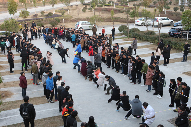 12月19日下午,由校工会、基础部主办的教职工拔河比赛在办公楼南广场举行,校长李辉,副校长尚文、白存良,党委委员、工会主席薄勇亲临比赛现场参加比赛,并为选手们加油鼓劲。全校10个基层工会代表队参加了比赛,以健康快乐的竞赛方式喜迎元旦佳节。