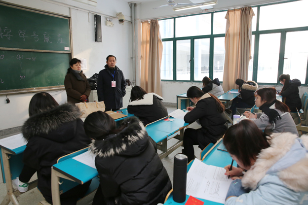 1月11日上午,校长李辉、副校长尚文在教务处相关人员的陪同下深入各院系考场巡视了期末考试情况。上午的期末考试涉及医学院、机电系、建工系等8个院系,共有58个考场,既有笔试也有上机考试。整个考试过程中,考务及监考人员尽职尽责,考生态度认真,考场秩序井然。
