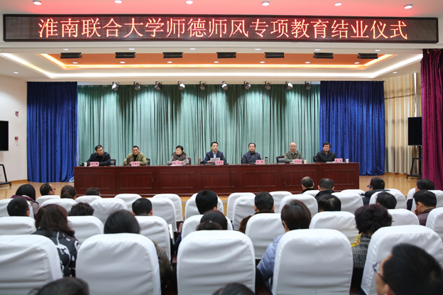 2月25日下午,beat365在南区1号报告厅举行师德师风专项教育结业仪式。校党委书记万继军主持仪式,校长李辉发表讲话,副校长尚文,副校长倪刘根,副校长白存良,党委委员、工会主席薄勇,纪委书记鲍广新出席仪式。全体教职工参加会议。