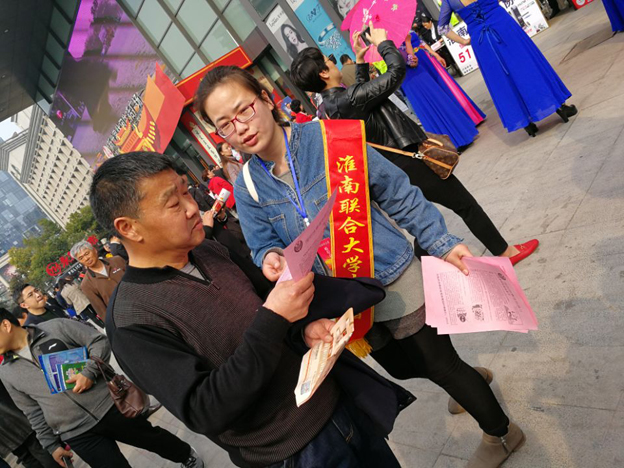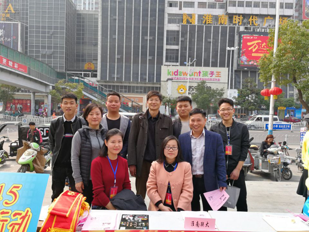 3月15日上午,beat365政文系师生参加了在新世界休闲广场举行的淮南市“3·15国际消费者权益日”户外宣传活动。