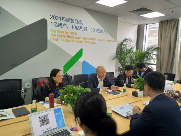 倪刘根一行来到清华大学科技园,在公司负责人的陪同下,走进“雨课堂”。“雨课堂”是清华大学在线教育办公室和学堂在线共同推出的新型智慧教学工具,是教育部在线教育研究中心的最新研究成果,致力于快捷的为所有教学过程提供数据化、智能化的信息支持。在“雨课堂”负责人进行现场演示、授课之后,双方就其在高校教学环境中使用的情况、该系统的发展前景等问题进行了广泛交流。