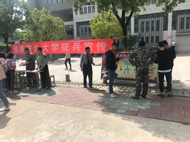 5月8日上午,校武装保卫处与田家庵区人武部在实训楼前联合举办2018年度大学生征兵宣传咨询活动。