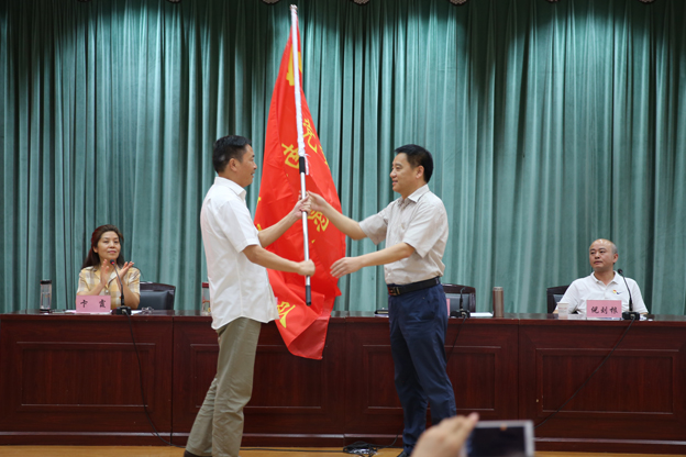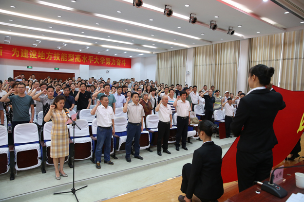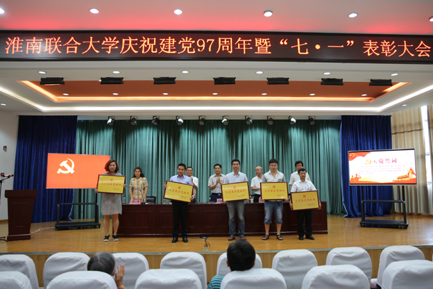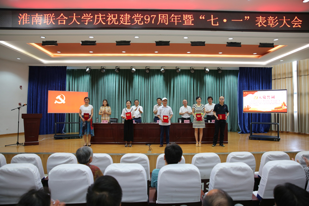卞霞宣读了《关于表彰先进基层党组织、优秀共产党员、优秀党务工作者的决定》。校领导为受表彰的代表颁奖。先进基层党组织代表和党员先锋岗、优秀党务工作者代表分别在会上发言。万继军为共产党员志愿队授旗,全体参会人员重温了入党誓词。
