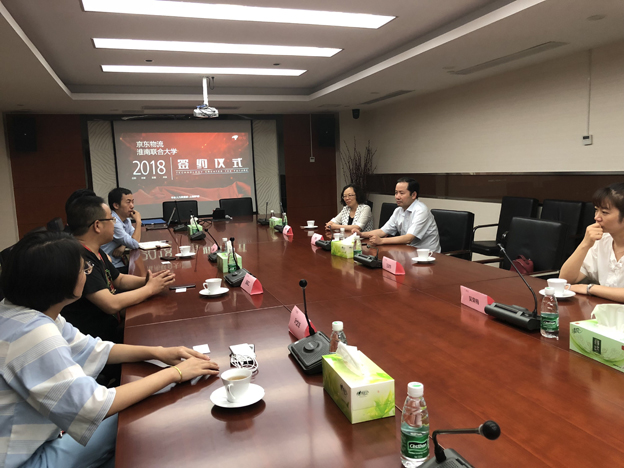 为进一步探索校企双方发挥资源优势共同致力于人才培养的方式方法,6月29日,校长李辉率经济管理学院相关老师与上海京东商城华东区分公司洽谈校企合作事宜。