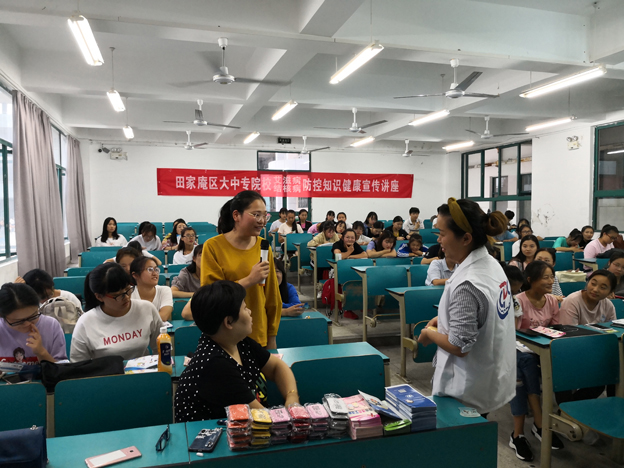 本次讲座由田家庵区疾控中心艾防科和免疫科老师担任主讲。内容主要包括艾滋病、结核病等传染病防控知识的宣传。主讲人通过分发宣传册、播放视频资料、配以图文并茂的PPT讲解、开展有奖竞答等形式,形象生动地为学生们呈现了一个趣味横生、理实结合、实用有效的讲座。主讲人还向学生着重强调了在生活中要注意清洁寝室卫生,勤开窗通风,多参加体育运动,提高身体素质,增强免疫能力。讲座现场气氛热烈,师生们受益匪浅。