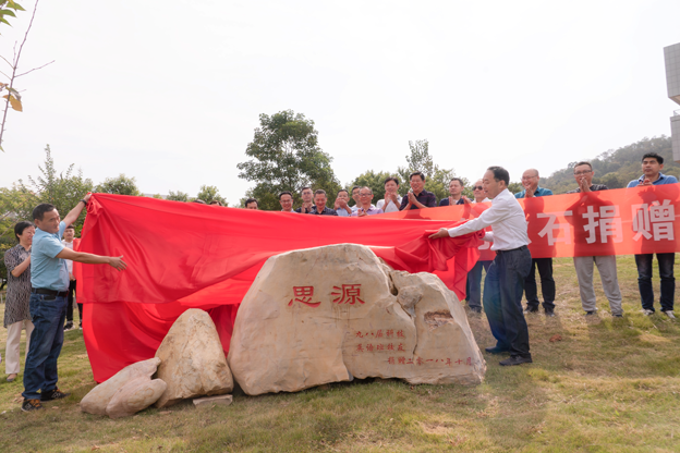 ;  ;会后,校领导和校友共同出席了98届科技英语校友向母校捐赠纪念石仪式。
