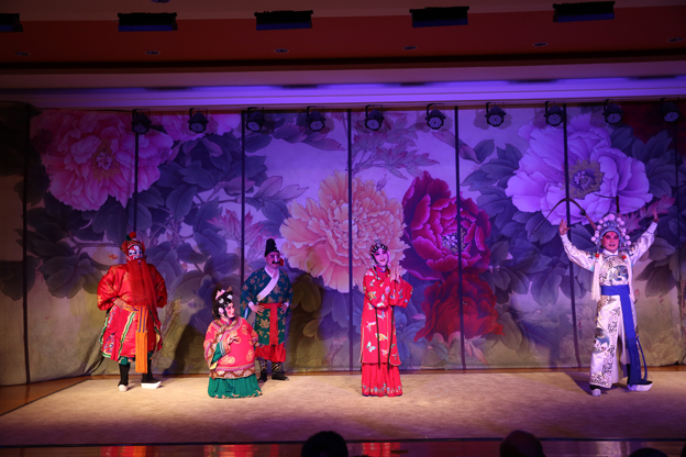 在同学们热烈的掌声中,节目正式开始。《拾玉镯》主演王李霞、周?S、洪雷,为同学们展现了一场戏剧中孙玉姣和傅朋的美丽爱情故事。武生魏鑫、杨海涛表演的节目《三岔口》中,两位演员一上台就用一系列高难度的动作表演赢得了在场学生们的热烈喝彩。《惊魂记▪;密谋》为我们绘声绘色地讲述了一个将军子胤不畏谗言、忠心为国的故事。我国戏曲最高奖----金梅花奖获得者王丹红老师将经典曲目《贵妃醉酒》搬上学校的舞台,各位演员的精彩表演获得报告厅所有师生的热烈掌声。