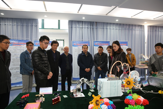 校领导饶有兴致地参观了三十余件作品,详细听取了发明者的解说,并对部分作品进行了点评。李辉对同学们充满智慧和汗水的科技作品给予了充分的肯定和赞赏,并鼓励同学们要再接再厉,不断创新、争取成果转化以实现社会效益和经济效益。参观后,领导一行与现场学生合影留念。