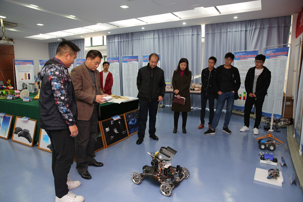 党委书记万继军现场与参与科技创新作品的师生亲切交流,听取了师生们对作品设计、制作和成果转化的现场汇报,观看了作品的现场展示,对师生为科技创新工作付出的努力给予了高度赞赏,并勉励广大师生要继续发扬科技创新精神,再接再励,提升创新能力的成果转化,在创新活动中实现创业实践,在创业实践中提升创新能力。