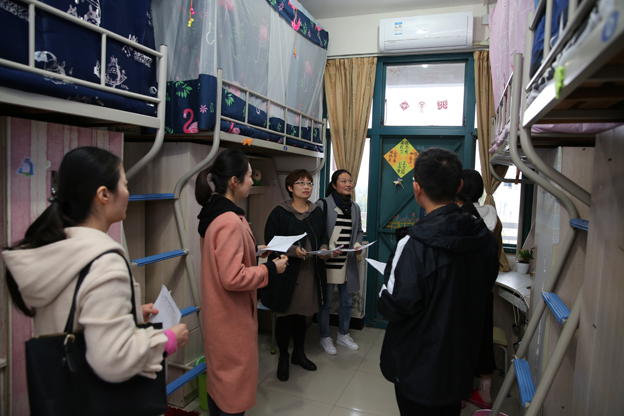 在院系审核推荐的基础上,11月14日下午,由校宣传部、后勤保障处、学生处组成的检查组,对推荐宿舍进行实地评选,围绕舍风建设、内务卫生、安全管理、文化建设等内容最终评定出84间本年度文明宿舍。
