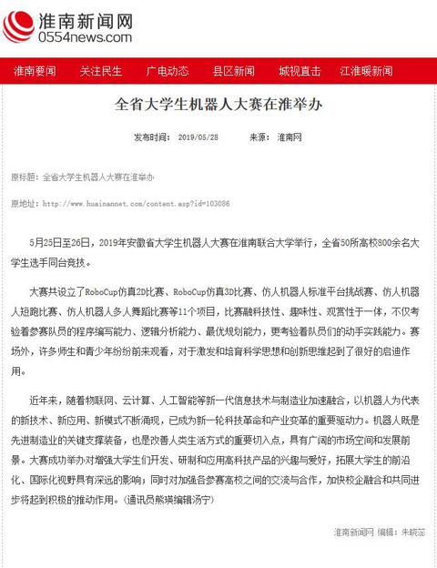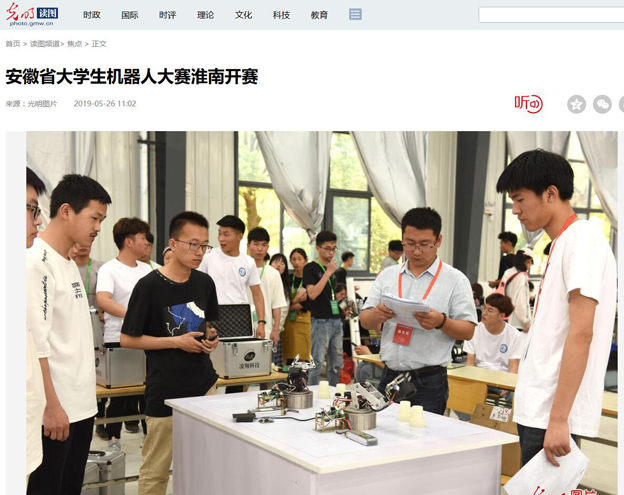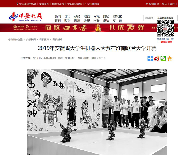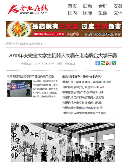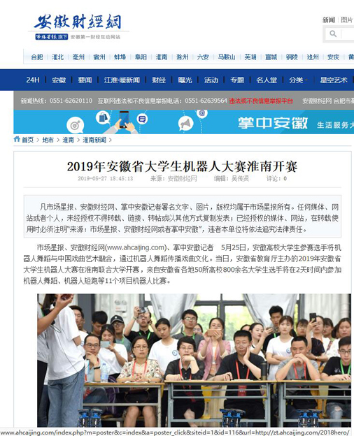 5月25日至26日,beat365圆满承办2019年安徽省大学生机器人大赛受到了光明网、安徽日报、安徽财经网、中安在线、合肥在线、淮南日报、淮南电视台等多家媒体的广泛宣传报道,进一步提升了学校的知名度和美誉度。