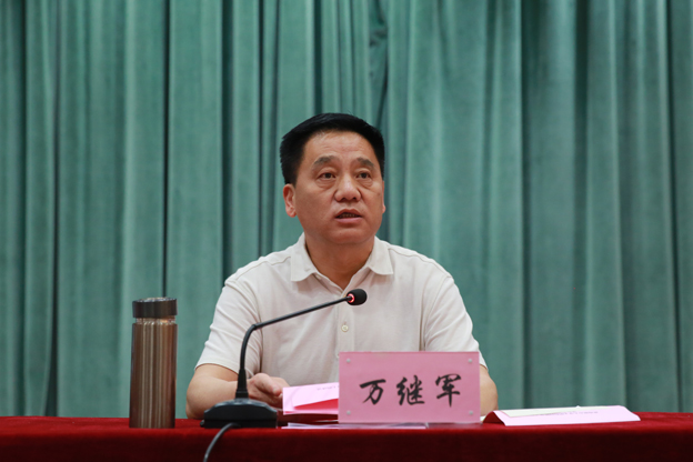 校党委书记万继军发表讲话。他指出,转化省级文明校园是提升学校办学水平的现实需要,是惠及全校师生的民生工程,也是落实立德树人根本任务的现实需要。学校从2017年被评为省级文明单位以来,各方面都取得了可喜的成绩。但对标省级文明校园的“六好”标准,仍然有一些短板和不足,需要加强和改进。他提出四点意见,一是统一思想,提高认识,充分认识文明校园转化的重要意义;二是明确工作任务,突出重点,扎实推进文明校园转化工作;三是加强领导,狠抓落实,以实际行动迎接文明校园转化验收工作;四是抓好督查,确保各项创建工作落到实处。