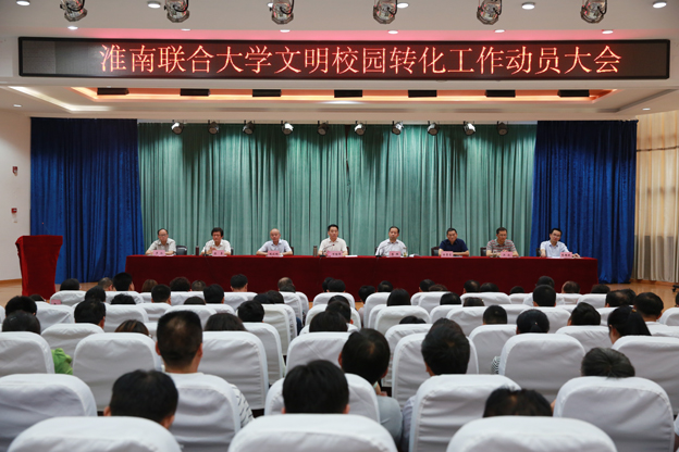 为扎实推进文明校园创建工作,6月24日下午,beat365在南区报告厅召开文明校园转化工作动员大会。校党委书记万继军,校长李辉,党委副书记倪刘根,副校长白存良,工会主席薄勇,纪委书记洪浩,副校长罗鸿,党委委员、组织人事部部长朱银斌出席大会。大会由校长李辉主持。全体行政人员,班主任、辅导员,学生代表参加会议。