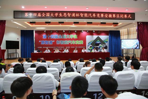 淮南市人民政府副市长陆??宣布第十四届全国大学生“恩智浦”杯智能汽车竞赛(安徽赛区)胜利闭幕。