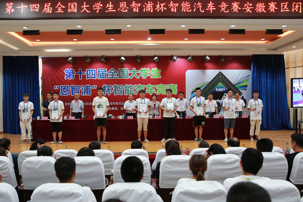 教育部高等学校自动化类专业教学指导委员会委员周纯杰教授,合肥工业大学教务处副处长、创新创业教育中心黄景荣主任分别致辞。恩智浦智能车赛安徽省赛吴晔秘书长宣读了获奖名单。与会领导为一等奖获得者队伍颁奖。