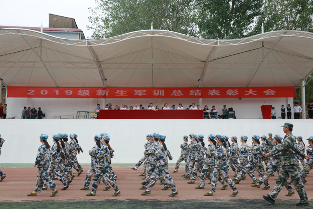 在庄严的升国旗仪式后,进行了军训成果展示暨汇报表演。经历了严格训练的新生们精神振奋、动作规范、队形整齐,气势雄壮,接受了检阅,充分展现了联大学子奋勇争先、昂扬向上的良好风貌。
