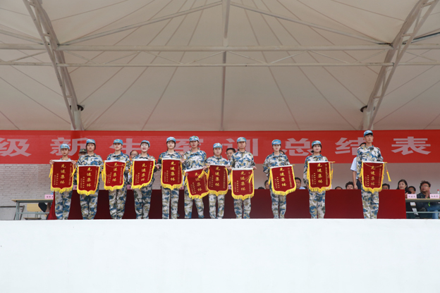 副校长罗鸿宣读了表彰决定,对军训先进集体、“优秀教官”、“优秀连队指导员”和“军训先进个人”进行表彰。校领导为受表彰代表颁奖。